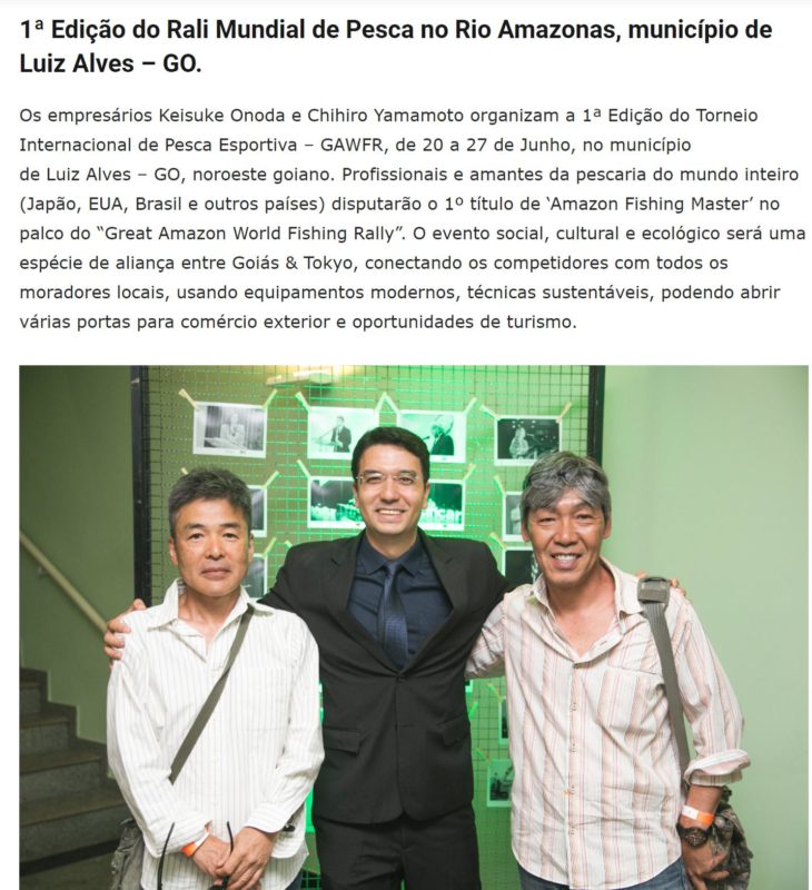 Professionals and fishing enthusiasts from all over the world (Japan, USA, Brazil and other countries) will compete for the 1st title of ‘Amazon Fishing Master’ on the stage of the Great Amazon World Fishing Rally. The social, cultural and ecological event will be a kind of alliance between Goiás & Tokyo, connecting the competitors with all the local residents, using modern equipment, sustainable techniques, and can open several doors for foreign trade and tourism opportunities.